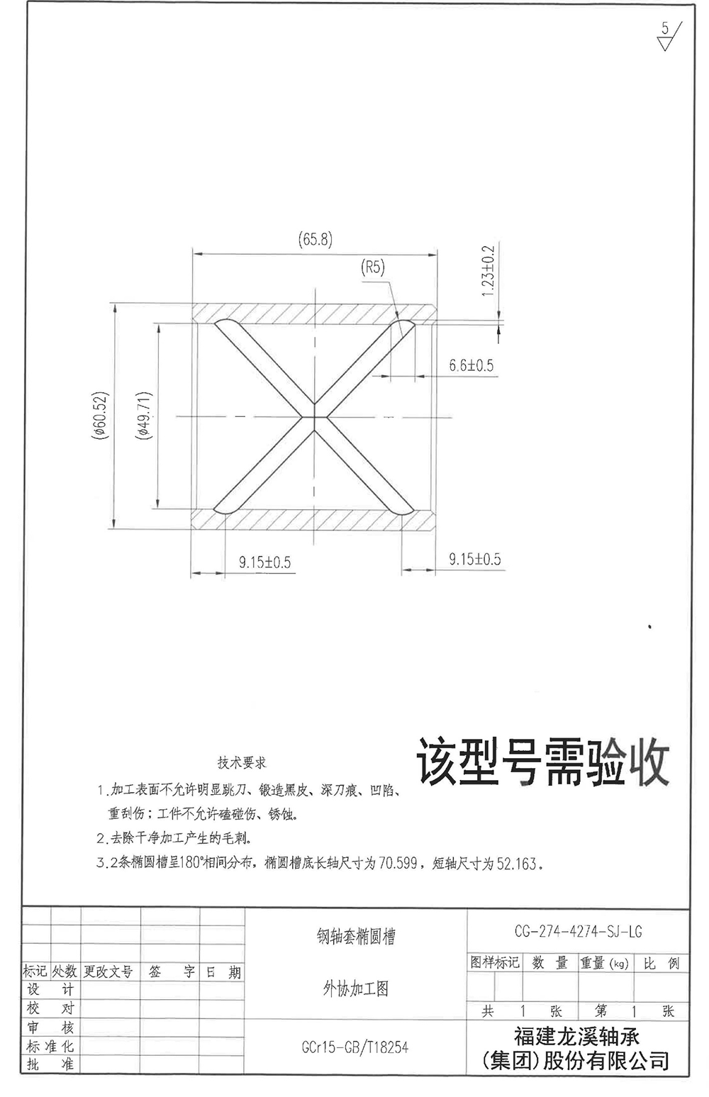 验收型号的尺寸加工要求如附图