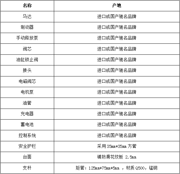 全电动自行走剪叉式高空作业平台技术(协议)内容要求