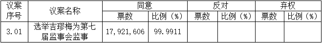 本次股东大会审议的议案三投票采用累积投票制表决,此议案的表决情况仅统计列示表决同意数。