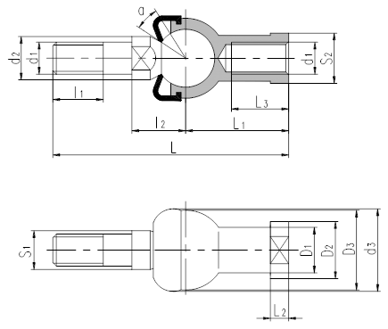 球头座杆螺纹也可为左旋,若是左旋,轴承型号和螺纹标记需加“L”和“左”,例如:SQZL5-RS  M5左-6H。