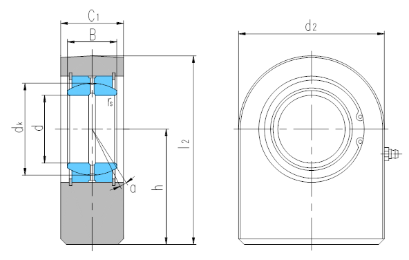 产品特点:焊接型杆端关节轴承由杆端体和向心关节轴承GE…ES或GEEW…ES组装而成,用挡圈固定,杆端体材料是易焊接钢,带有长方形焊接面;可通过油杯润滑。