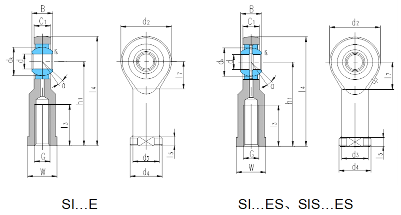 若是左旋螺纹,轴承型号和螺纹标记需加“L”和“左”,例如:SIL20ES  M20×1.5左-6H。