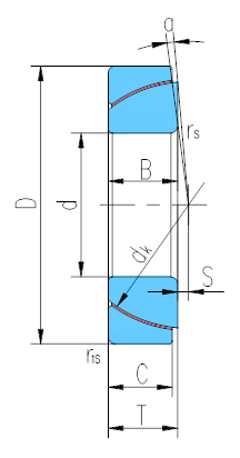 d | D | B | C | T | dk | S | rs,r1s min | α˚ ≈ | 动载荷 Dynamic | 静载荷 Static | ||