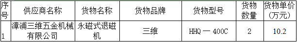 一号娱乐集团永磁式退磁机采购与安装中标公告