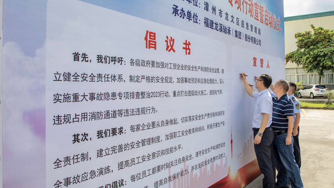 陈志雄首先带领全体参加人员宣读《全市工贸企业“畅通绿色生命通道”倡议书》,进行安全宣誓,并开展“畅通绿色生命通道”专项行动签名活动。