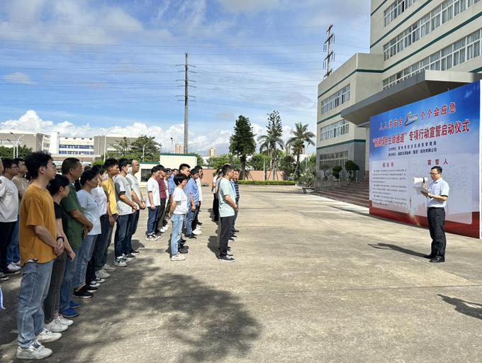 2023年6月30日,一号娱乐集团开展“畅通绿色生命通道”专项行动宣誓仪式暨灭火和应急疏散预案演练活动。此次活动由公司与漳州市龙文区应急管理局联合举办。公司党委副书记、总经理陈志雄、党委委员、副总经理张逸青出席,各部室、车间代表参加活动。