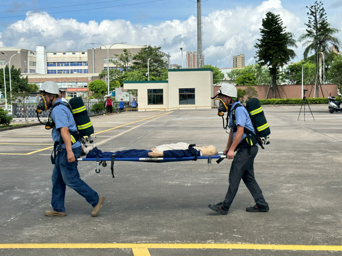 陈志雄向参加人员强调了应急演练的纪律,并宣布演练开始。接到指令后,各应急小组按照预案中的紧急报警、紧急疏散、应急救护和现场警戒等程序有条不紊地展开演练。