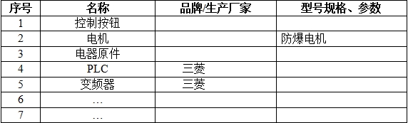 6、相关技术参数表,如包括但不限于变频器、伺服驱动器。