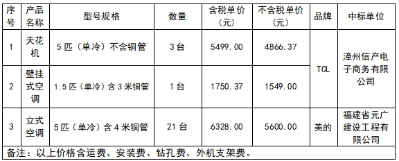 一号娱乐集团采购空调中标公告