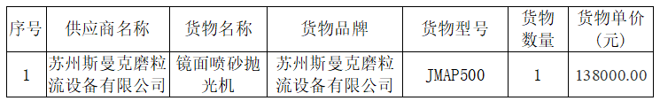 一号娱乐集团镜面喷砂抛光机采购与安装中标公告