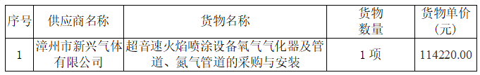 一号娱乐集团超音速火焰喷涂设备氧气气化器及管道、氮气管道的采购与安装中标公告