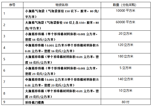 一号娱乐集团采购气泡袋、珍珠棉招标公告