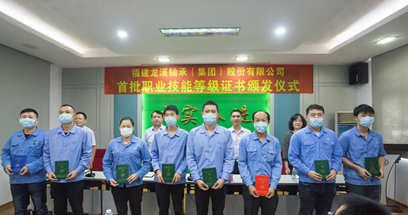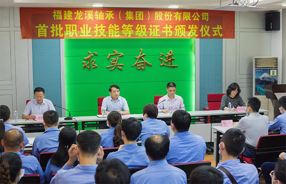 颁证仪式上,林贵达等领导向首批通过企业职业技能等级认定考核的16名职工代表颁发职业技能等级证书。